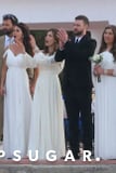 Jessica's off-the-shoulder dress featured a cinched-in waist and long, billowy sleeves. She accessorized with a pair of sparkly stud earrings and a diamond cuff. On the other hand, JT looked dapper in a sharp black suit, white button-up, and a matching tie. Read on to get a closer look at Jessica's angelic wedding guest dress, and buy similar versions if you want to give the look a try.